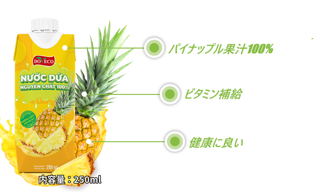 ベトナムDOVECO社の日本正規パートナーとして、パイナップル・スイートコーン等の加工食品を輸入し、EC・業務用・小売向けに流通展開する食品商社です。
